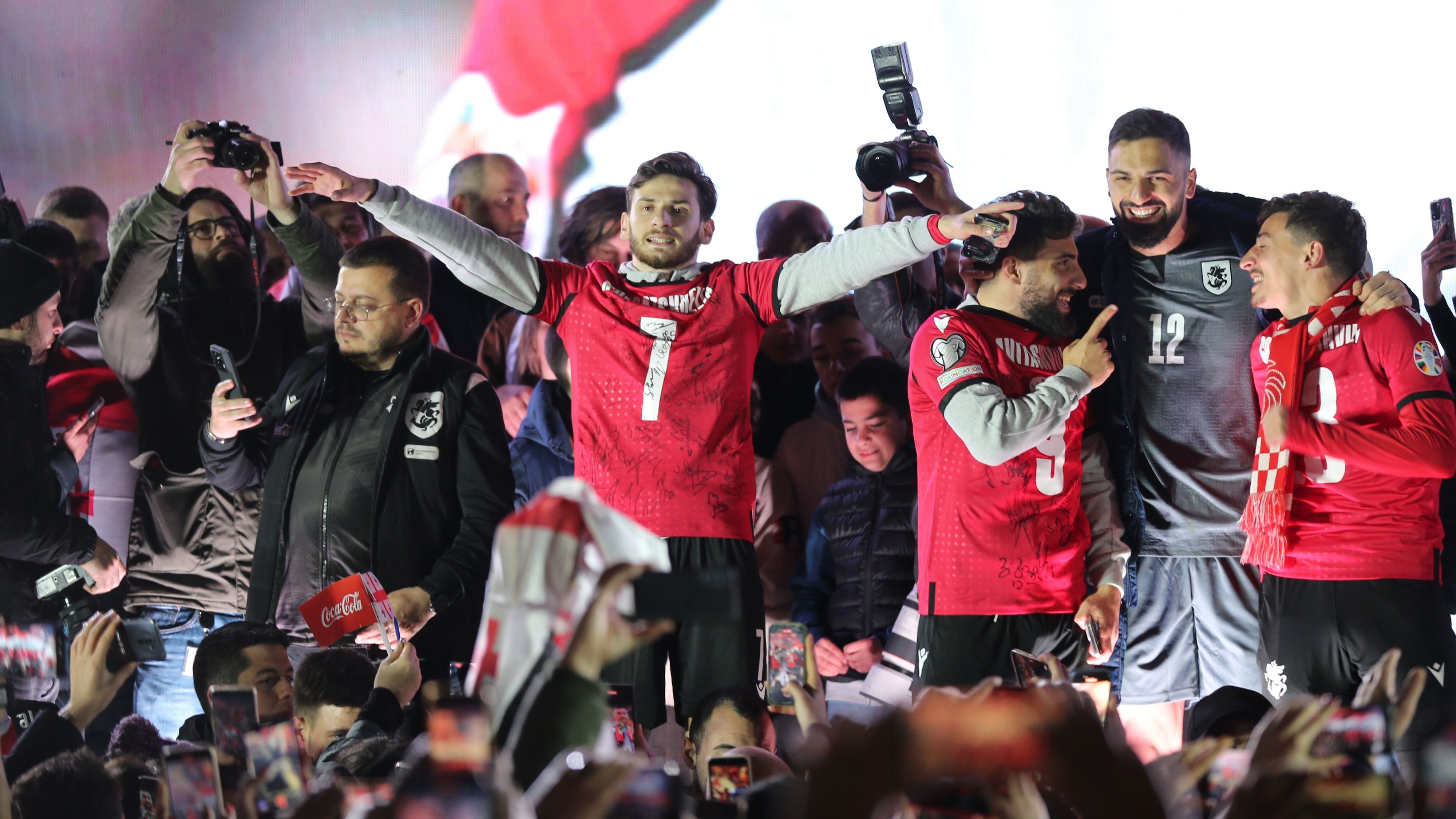 In der georgischen Hauptstadt Tiflis wurde die Nationalmannschaft mit einem rauschenden Fest empfangen. Die Fans jubelten den Spielern zu und maßen den Leistungen historische Bedeutung zu.