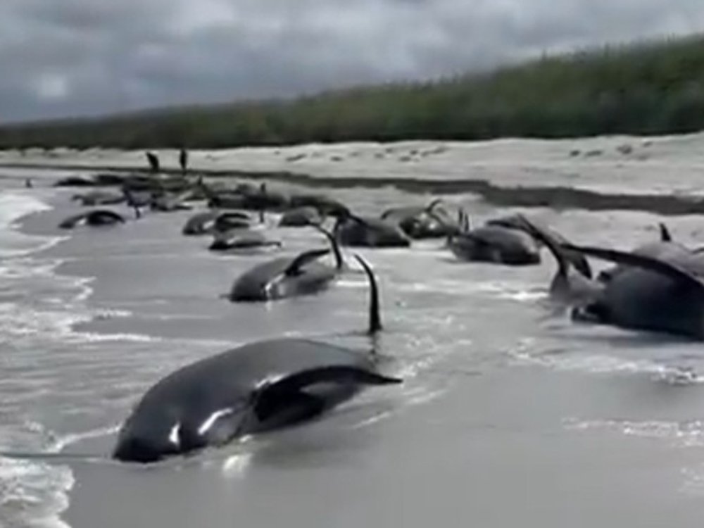 Traurige Szenen auf den schottischen Orkney-Inseln: Insgesamt 77 Grindwale sind gestrandet und verendet. Social-Media-Videos zeigen die Massenstrandung.
