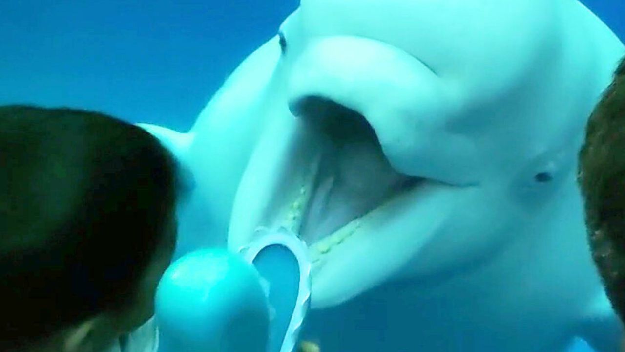 Dies ist der lustige Moment, in dem ein frecher Beluga-Wal einigen Kindern Angst einjagte.