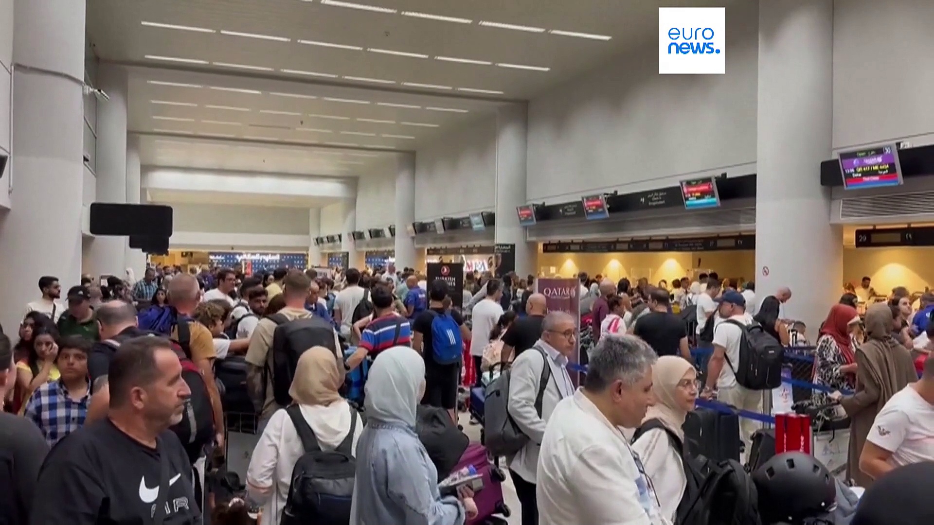 Lange Warteschlangen im internationalen Flughafen Rafik Hariri in Beirut, nachdem immer mehr Fluggesellschaften Flüge nach Beirut aussetzen.