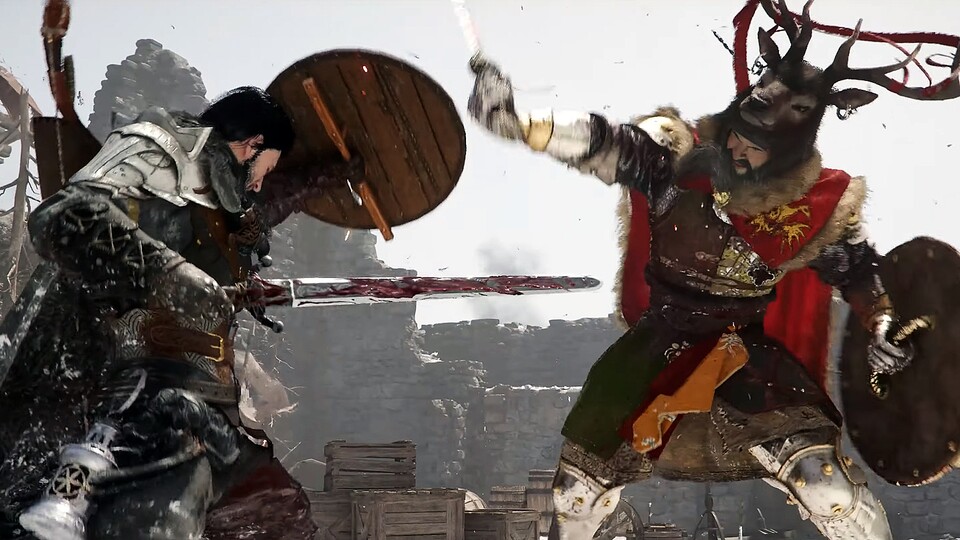 Crimson Desert ist eine mittelalterliche Fantasy-Sandbox, in dessen Open World ihr so ziemlich alles machen könnt, was ihr nur wollt. Im neuen Video von der gamescom 2024 steht nun ein einzelner Aspekt im Vordergrund, nämlich cool inszenierte Bosskämpfe! <br /> <br /> Unser Titelheld Kliff lernt auf einem verschneiten Berggipfel den Hirschkönig kennen, der blöderwiese jeden Eindringling in sein Reich sofort mit dem Tode bestraft. Und so bleibt nichts anderes, als selbst die Klinge zu zücken. <br /> <br /> Besonders auffällig sind die butterweichen Animationen, das breite Spektrum von Attacken und die imposanten Partikeleffekte. Dieses Duell kann sich definitiv sehen lassen! Noch nicht genug gesehen? Werft einen Blick in unsere Gameplay-Analyse von der gamescom . <br /> <br /> Crimson Desert ist ein Singleplayer-Spiel mit einer voll simulierten Welt und Story-Fokus und erscheint voraussichtlich zwischen April und Juni 2025 auf PS5, PC und Xbox Series-Konsolen.