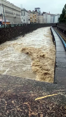Wassermassen, gefilmt von der Pilgrambrücke in Wien