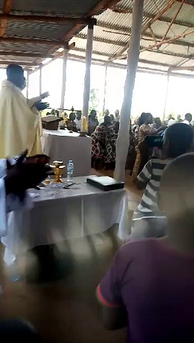 So wird in Lupiro die hl. Messe gefeiert. <br />Zum Sitzen bringen die Leute ihre Plastik-Stühle von zu Hause selbst mit. <br /><br />LEO HAIJAWAI TOKEA KATIKA KANISA LETU. NI SHANGWE NA NDEREMO TU. HONGERA FR.LINUMA. HONGERENI WAAMINI KWA KUFANIKISHA HILO.