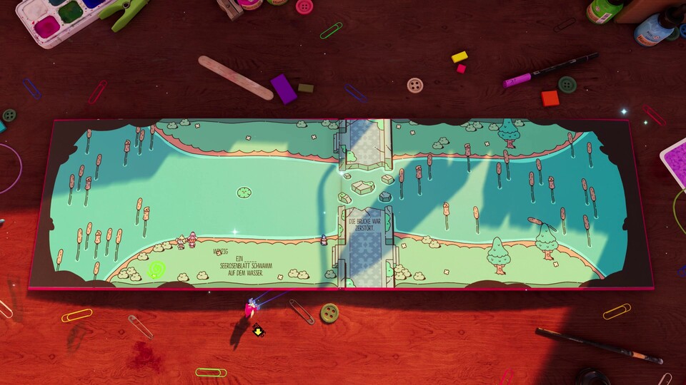 The Plucky Squire ist einer der ganz großen Indie-Hits des Jahres 2024. Das liegt nicht zuletzt an den unfassbar kreativen Rätseln, die uns das Action-Adventure vorsetzt. Im obigen Video zeigen wir euch eines davon. <br /> <br /> Worum geht's? Der kühne Knappe Jot und seine Freunde Viola und Krass müssen an einem Insekt vorbei. Klingt einfach, doch leider ist das Viech so groß, dass es den ganzen Weg versperrt. Kein Problem: Jot tauscht einfach einige Wörter in dem Märchenbuch aus, um die Spielwelt zu verändern. <br /> <br /> Kurze Zeit später nutzt er den gleichen Kniff, um eine Seerose zu vergößern. Das Problem diesmal: Das benötigte Wort befindet sich gar nicht auf der Buchseite. Was nun? Die Lösung seht ihr im Video. <br /> <br /> Wie gut wir The Plucky Squire finden, erfahrt ihr in unserem Test .