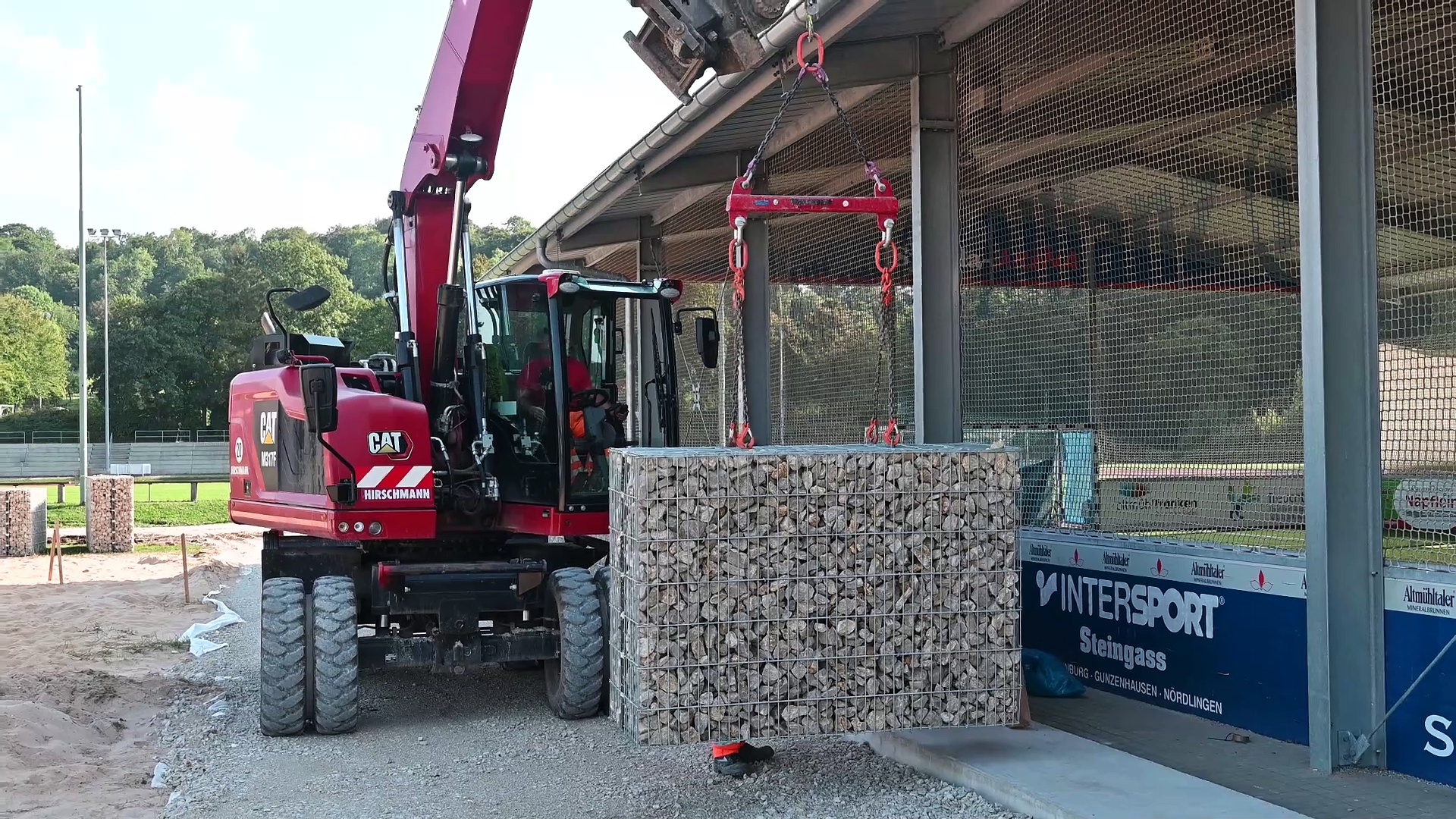 An der Treuchtlinger Bezirkssportanlage wird an der Freilufthalle gerade eine Lärmschutzwand errichtet.