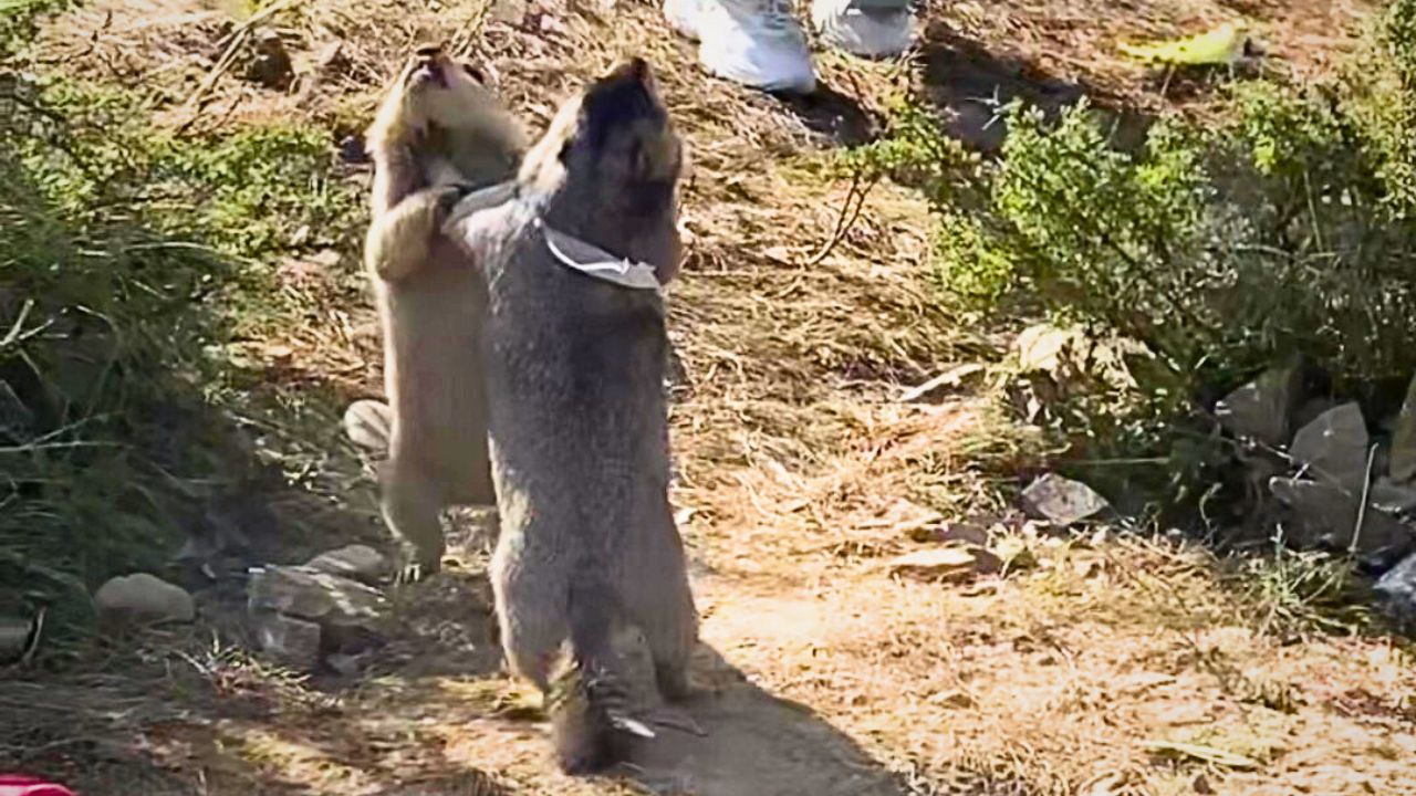 Ein Moment, in dem sich Touristen um ein Murmeltierpaar scharen - um sie kämpfen zu sehen