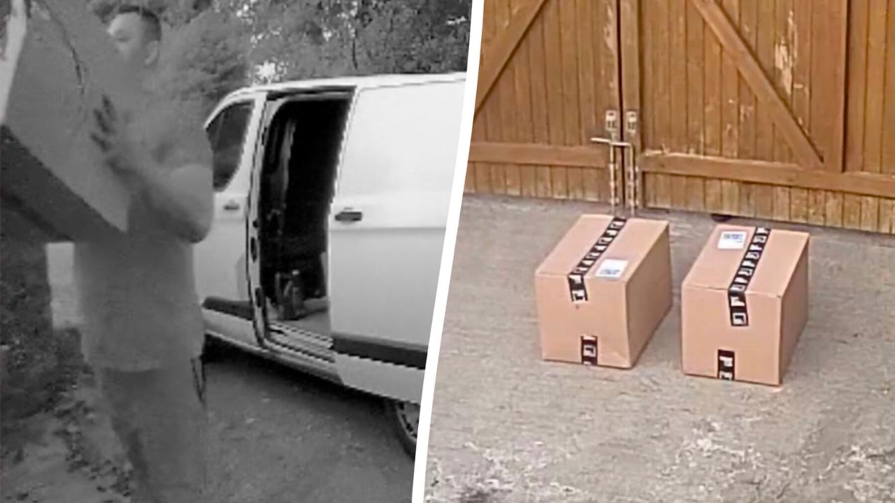 Steph McIntosh sah, wie der Yodel-Zusteller ihre Pakete über ihr 1,8 m langes Tor warf. <br /><br />Die Pakete enthielten zerbrechliche Figuren.<br /><br />Ein Yodel-Sprecher sagte: „Wir ergreifen geeignete Maßnahmen, um sicherzustellen, dass es nicht noch einmal passiert.“<br /><br />Dieses Video wurde am 9. September 2024 gedreht.