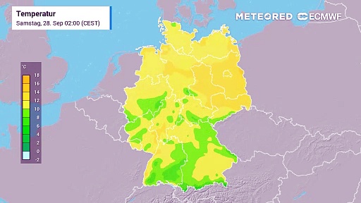 Es wird am Wochenende deutlich frischer. Dabei kommt es sogar zu Bodenfrost in der Nacht auf Sonntag. In 2 Metern Messhöhe sinken die Temperaturen teilweise auf unter 5 Grad.