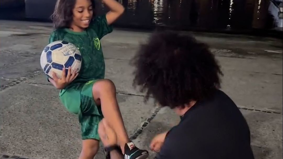 Marcelos Sohn schafft das, was jahrelang die besten Stürmer der Welt vergeblich versucht haben: Den Brasilianer zu tunneln. Die Reaktion vom Papa ist daraufhin überragend.