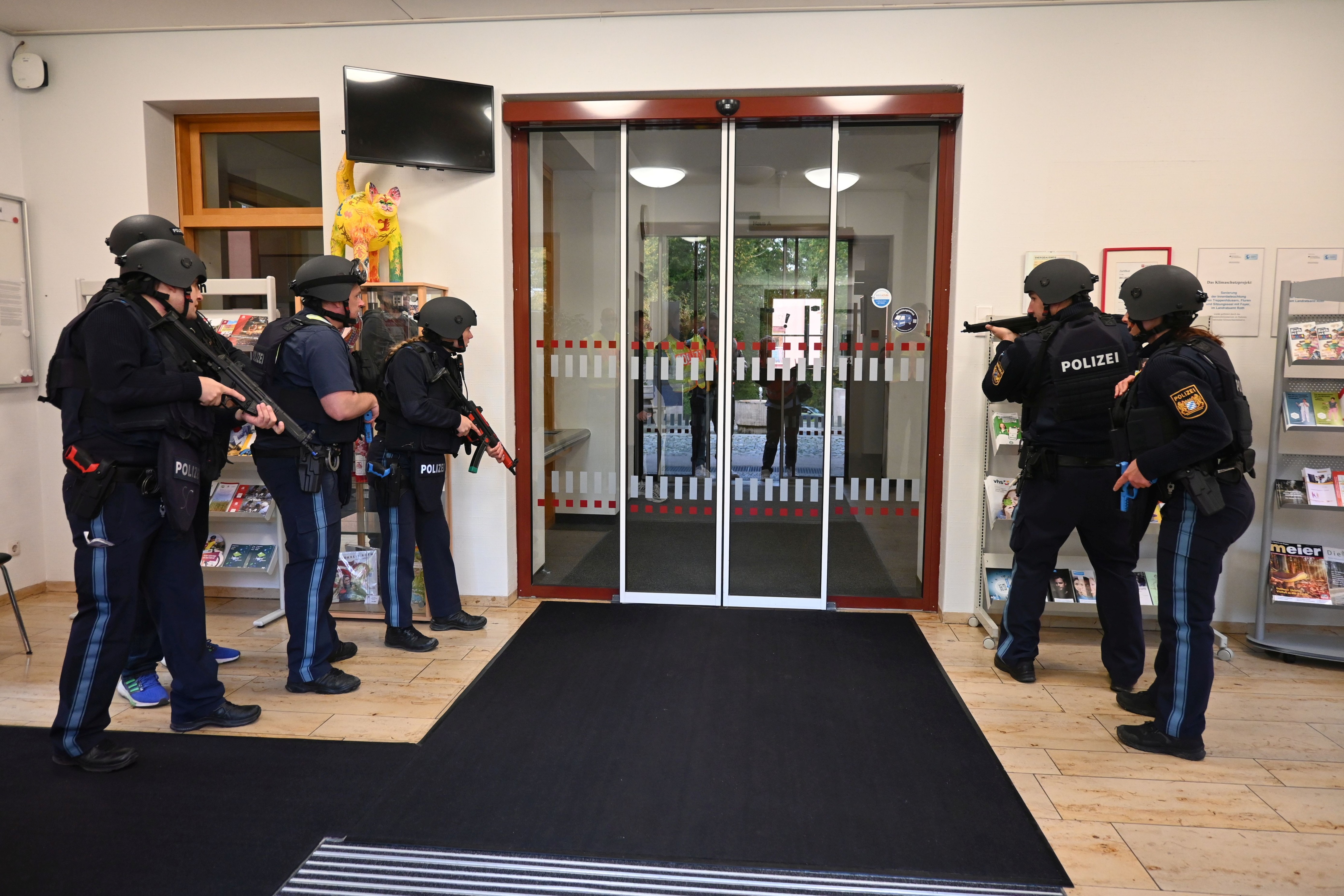 Im Landratsamt Roth waren zahlreiche Polizeieinheiten zu Gast, um in dem großen, verwinkelten Gebäude für gefährliche und brisante Einsätze zu trainieren. <br />Video: Evgenia Frömter
