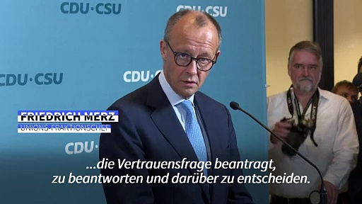 Unions-Fraktionschef Friedrich Merz (CDU) hat die gemeinsam mit der SPD vereinbarten Pläne für die Abhaltung der vorgezogenen Bundestagswahl am 23. Februar bestätigt. Dieser Termin sei "vertretbar" und eine "gute Lösung", sagte Merz vor einer Sitzung seiner Fraktion. Der CDU-Chef kündigte an, er werde den Termin nun gemeinsam mit SPD-Fraktionschef Rolf Mützenich am Abend Bundespräsident Frank-Walter Steinmeier vorschlagen.