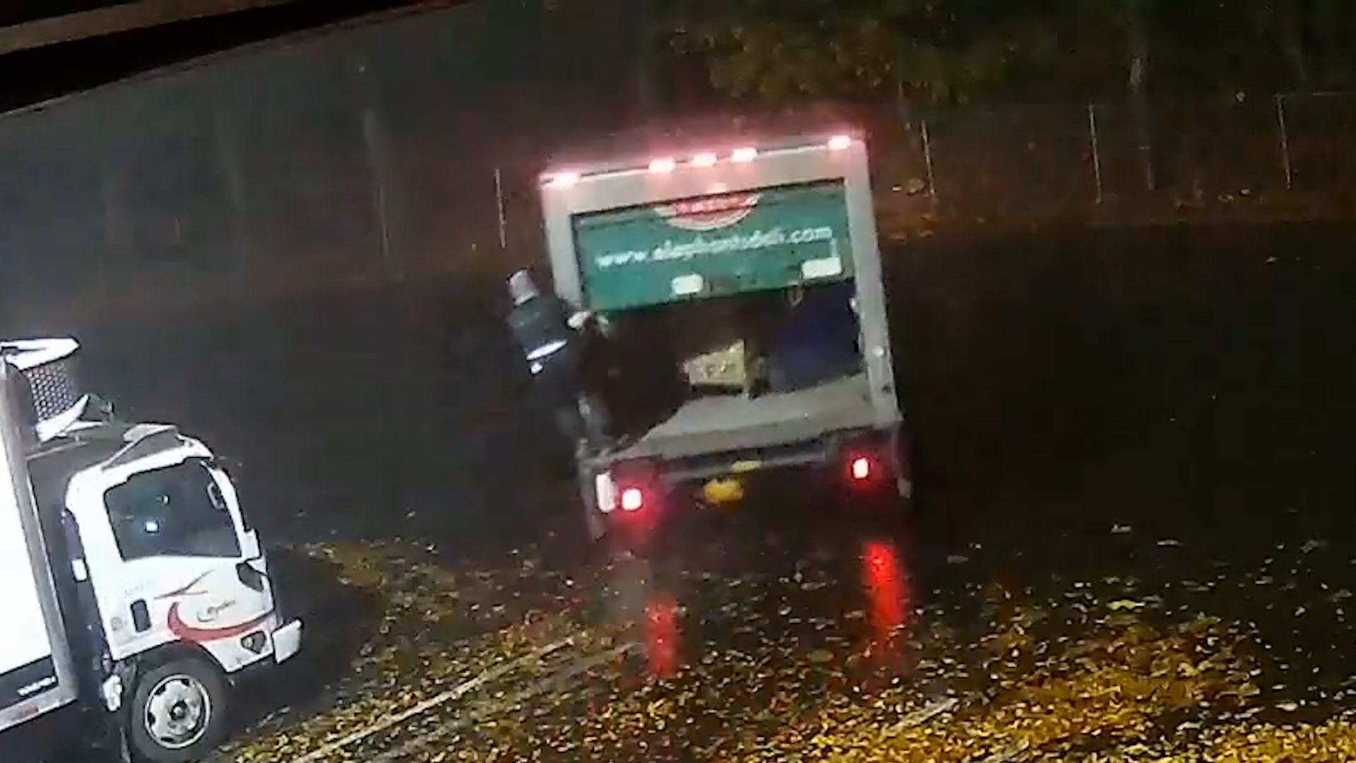 Eine Videoüberwachung zeigt den 29-jährigen Forrest Lee Guayante, wie er in den frühen Morgenstunden des 15. November auf einen Lastwagen von Elephants Delicatessen zugeht. <br /><br />Gegen Guayante wurde Anklage wegen unbefugter Benutzung eines Kraftfahrzeugs, rücksichtsloser Gefährdung, Fahrerflucht und unerlaubten Besitzes von Methamphetamin erhoben.<br /><br />Dieses Video wurde am 15. November 2024 gedreht.