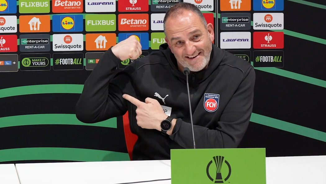 Die Heidenheimer Fans lieferten gegen den FC Chelsea eine Choreo, die vor allem Frank Schmidt begeisterte. Der Trainer scherzte danach auf der Pressekonferenz über seinen Bizeps.