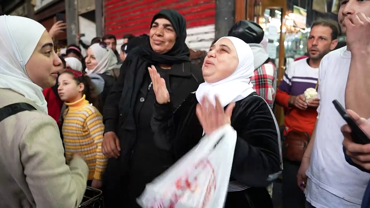Syriens Hauptstadt Damaskus wenige Tage nach dem Ende der langjährigen Herrschaft von Machthaber Baschar al-Assad. Auf den Straßen herrscht Trubel. Immer wieder kommt es zu spontanen Freudentänzen. Die Menschen wirken aufgekratzt; sie gehen einkaufen, treffen sich mit Freunden und Verwandten. Die Stimmung scheint gelöst.