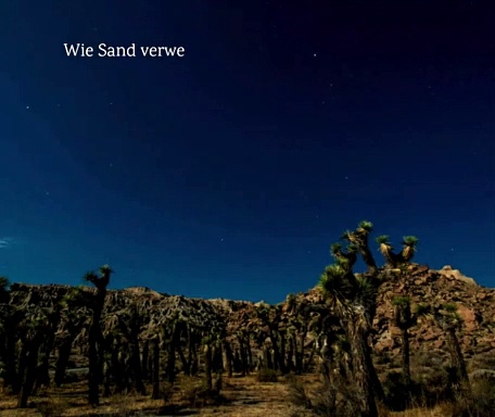 25.11.2024<br /><br />Spuren der Stille<br /><br />Wie Sand verweht im Sturmeskreis,<br />so rinnt die Zeit, so fällt der Preis.<br />Verloren scheinen Herz und Spur,<br />doch über Wüsten wächst Natur.<br /><br />Ein Mond erhellt, was dunkel war,<br />sein Strahl durchdringt das Leid so klar.<br />Vergiss den Schmerz, der Nacht verglimmt,<br />im Morgenwind, der Frieden bringt.<br /><br />#Sput #Stille #Motivation