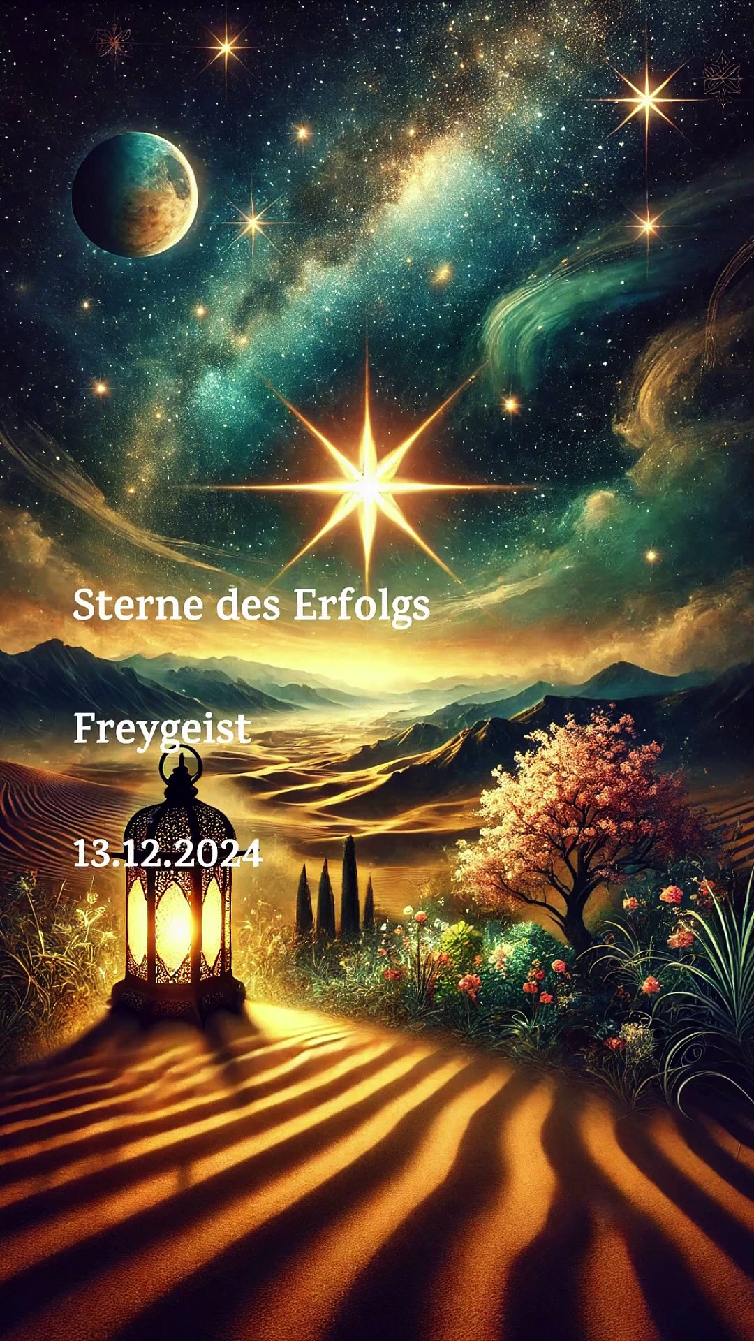 13.12.2024<br /><br />Sterne des Erfolgs<br /><br />In deinen Träumen leuchtet das ewige Licht,<br />wie Sterne, die tanzen im Morgenlands Blick.<br />Im Scheitern gedeiht, was die Seele gewinnt,<br />denn wer liebt, bleibt gesund und das Glück sich ersinnt.
