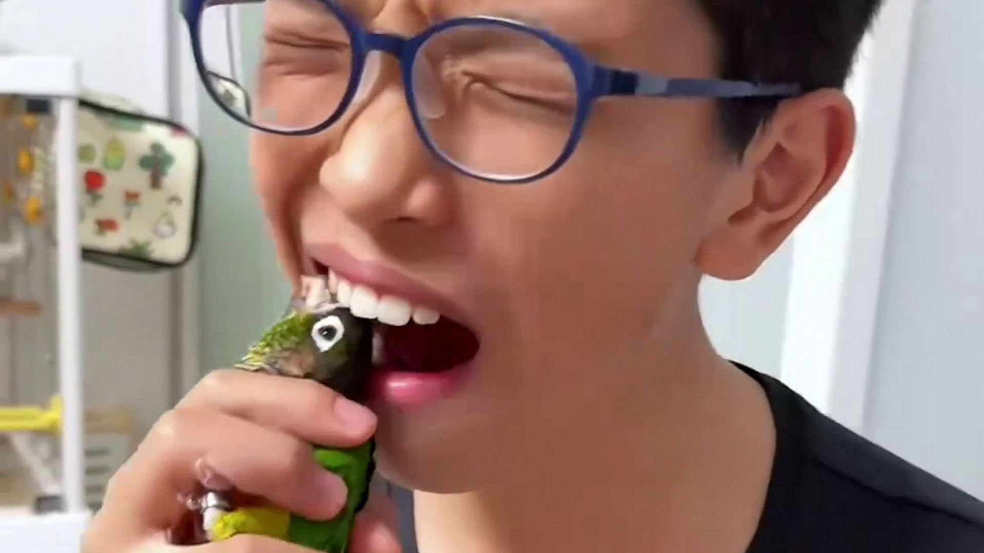 Dies ist der bizarre Moment, in dem ein Junge mithilfe seines Papageis seinen letzten Milchzahn zog.