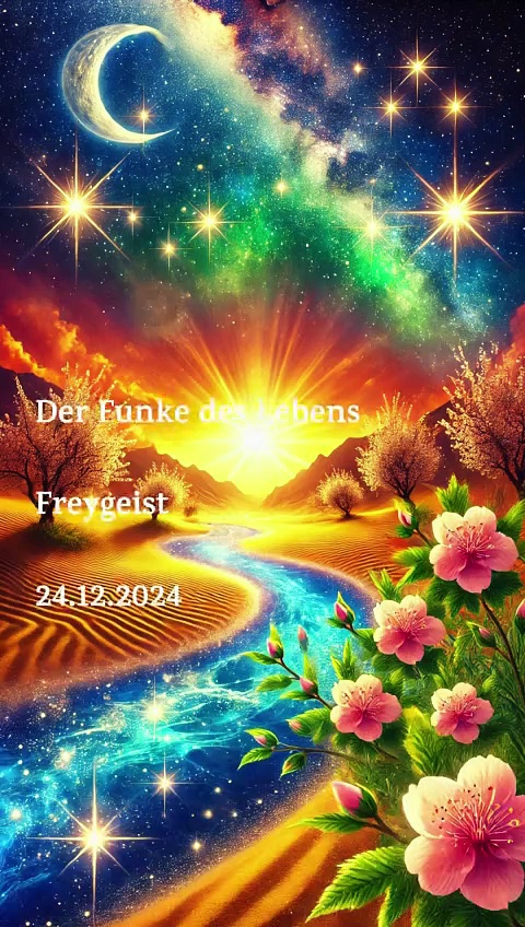 24.12.2024<br /><br />Der Funke des Lebens<br /><br />Im Herzen lodert das ewige Licht,<br />das Liebe wie Sterne in Nächten verspricht.<br />Gesundheit wie Flüsse in Wüsten entspringt,<br />wo Reichtum als Blüte des Glaubens gelingt.<br /><br />„Träume nicht dein Leben, sondern lebe deinen Traum.“<br /><br />Dieses Gedicht lädt dazu ein, sich den eigenen Träumen zuzuwenden und Mut zu schöpfen. 🌟<br /><br />Besuche meinen Blog für weitere Inspirationen und Gedanken:<br />👉 www.weisheitundwohlstand.com<br /><br />Wenn dir mein Gedicht gefällt und du meine Arbeit unterstützen möchtest, freue ich mich über eine Spende.<br /><br />Vielen Dank für deinen Support! 🙏