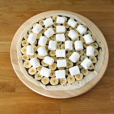 Rezept Nachtisch <br /><br />Wie wäre es mit einer Pizza zum Nachtisch? Holen Sie Ihre Süßigkeiten heraus und los geht's mit der Umsetzung! <br /><br />Zutaten: <br /> - 1 Pizzateig <br /> - 4 Esslöffel Aufstrich <br /> - 2 Bananen <br /> - 30 Marshmallows <br /> <br /><br />Siehe Rezept auf der Website: https://www.petitchef.de/rezepte/nachtisch/suse-pizza-banane-schokolade-fid-1583806 <br /><br />