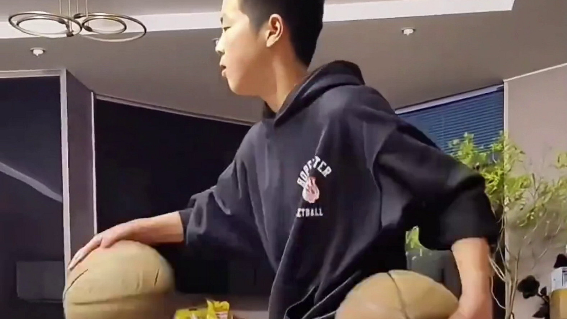 Ein kleiner Junge zeigte seine beeindruckenden Basketballkünste, indem er zwei Bälle fehlerfrei dribbelte und dabei auf einer Bank balancierte.