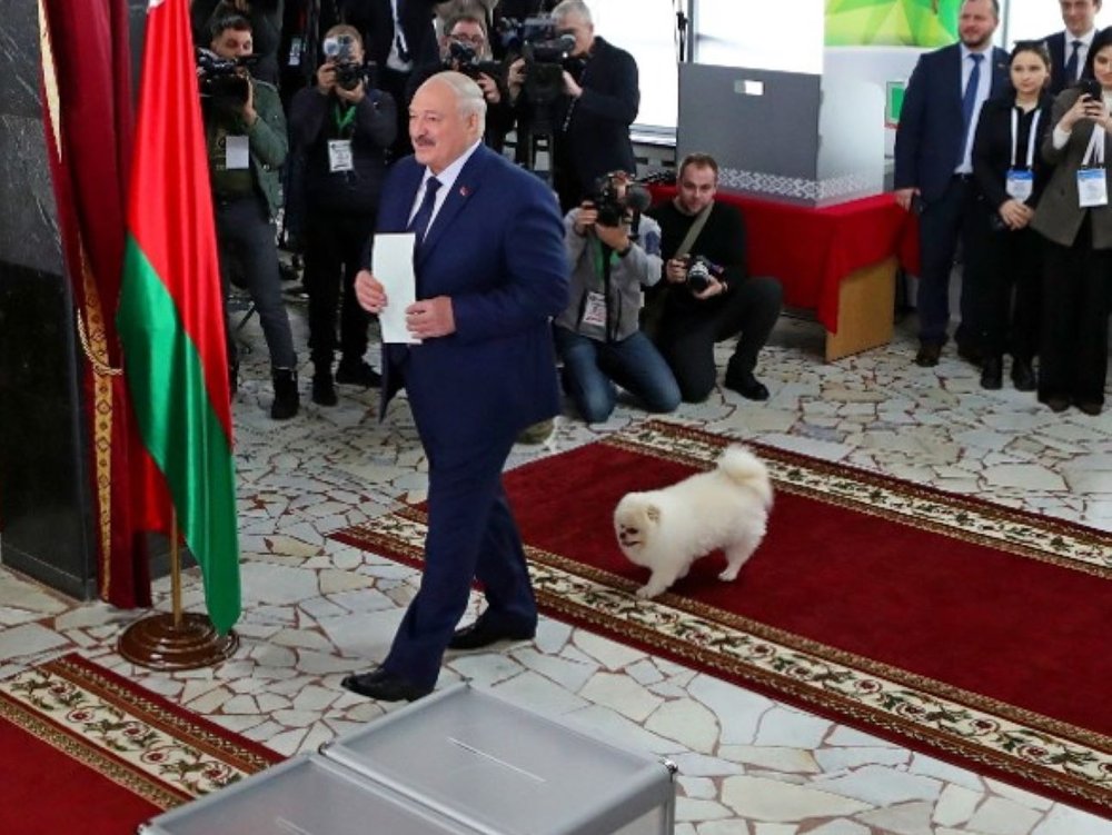Bei der Präsidentschaftswahl in Belarus sorgt der Hund von Alexander Lukaschenko für eine kuriose Szene. Als der Präsident seine Stimme abgeben will, markiert der Hund sein Revier.