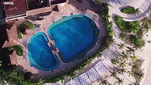 » SWNS News » kleinster Delfintank » Drohne filmt Delfine » kleinster Tank in Lateinamerika » Delfine nahe dem Meer » Meeresleben in Gefangenschaft » Delfine in beengtem Tank » Gefangenschaft nahe am Ozean » Drohnenaufnahmen von Delfinen