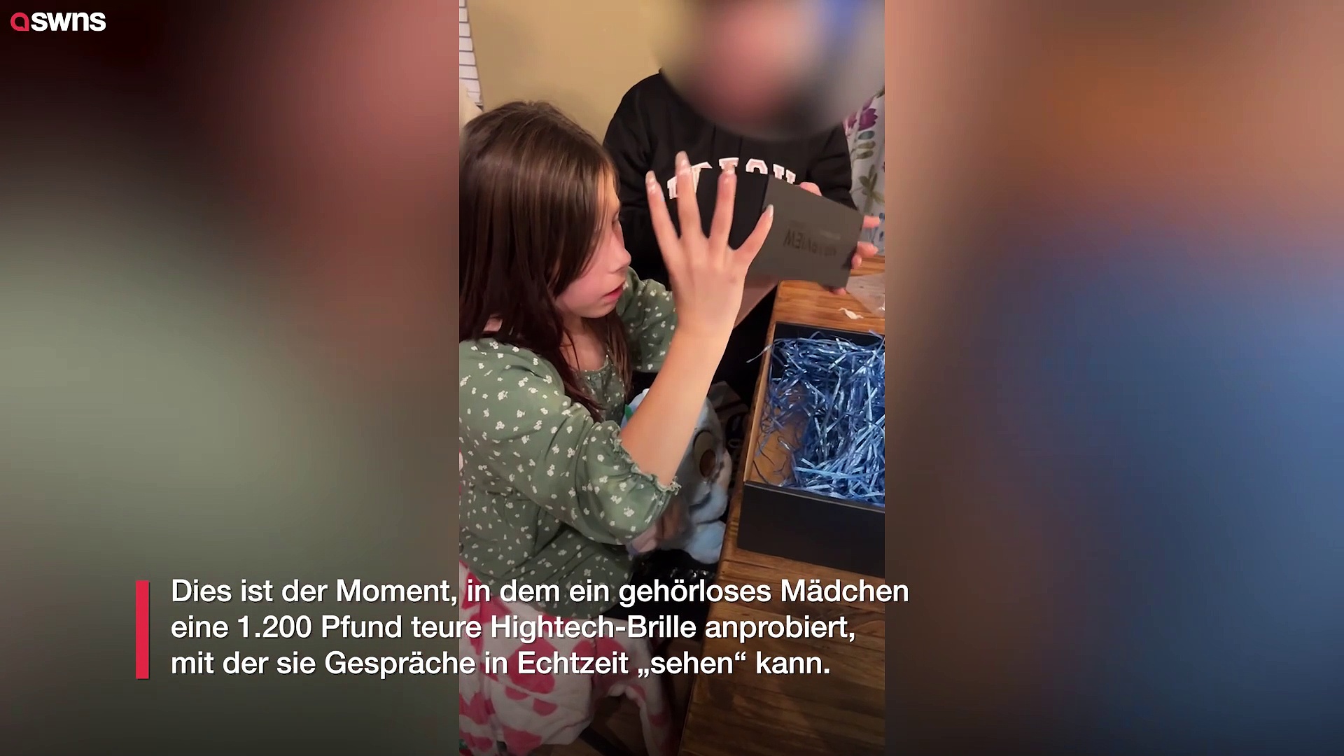 Dies ist der Moment, in dem ein gehörloses Mädchen eine 1.200 Pfund teure Hightech-Brille anprobiert, mit der sie Gespräche in Echtzeit „sehen“ kann. <br /><br />Kendyl Pool wurde hochgradig taub geboren und kommuniziert seit ihrem sechsten Lebensmonat mit der amerikanischen Gebärdensprache (ASL).<br /><br />Ihre Mutter Bri Pool entdeckte die Beschriftungsbrille auf TikTok und wusste, dass sie für ihre Tochter lebensverändernd sein könnte.