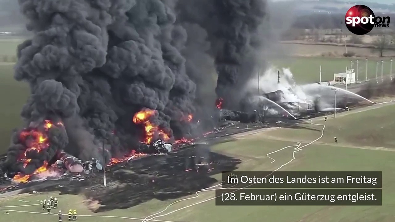 Ein Zug ist in Tschechien entgleist und in Brand geraten. Dabei trat der krebserregende Stoff Benzol aus. Über 150 Einsatzkräfte waren an der Unfallstelle, um das Feuer zu löschen.