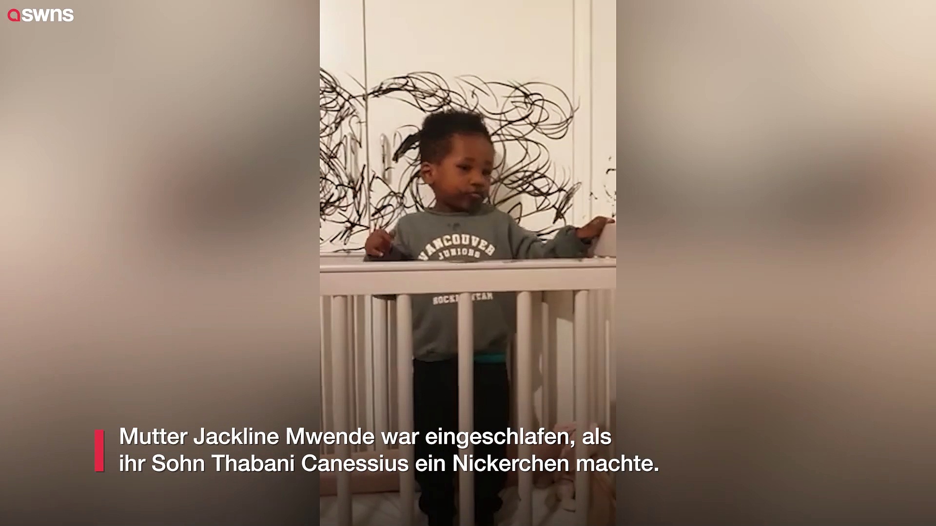 Mutter Jackline Mwende war eingeschlafen, als ihr Sohn Thabani Canessius ein Nickerchen machte.<br /><br />Als sie aufwachte, sah sie, dass er die Wände mit ihrem Eyeliner vollgekritzelt hatte.