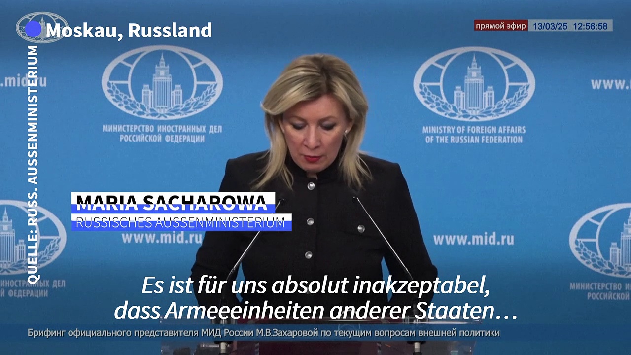 Die Entsendung von europäischen Friedenstruppen in die Ukraine würde nach Ansicht von Moskau den Eintritt in einen "direkten bewaffneten Konflikt" bedeuten. "Es ist für uns absolut inakzeptabel, dass Armeeeinheiten anderer Staaten unter irgendeiner Flagge in der Ukraine stationiert werden", sagte die Sprecherin des russischen Außenministeriums, Maria Sacharowa.