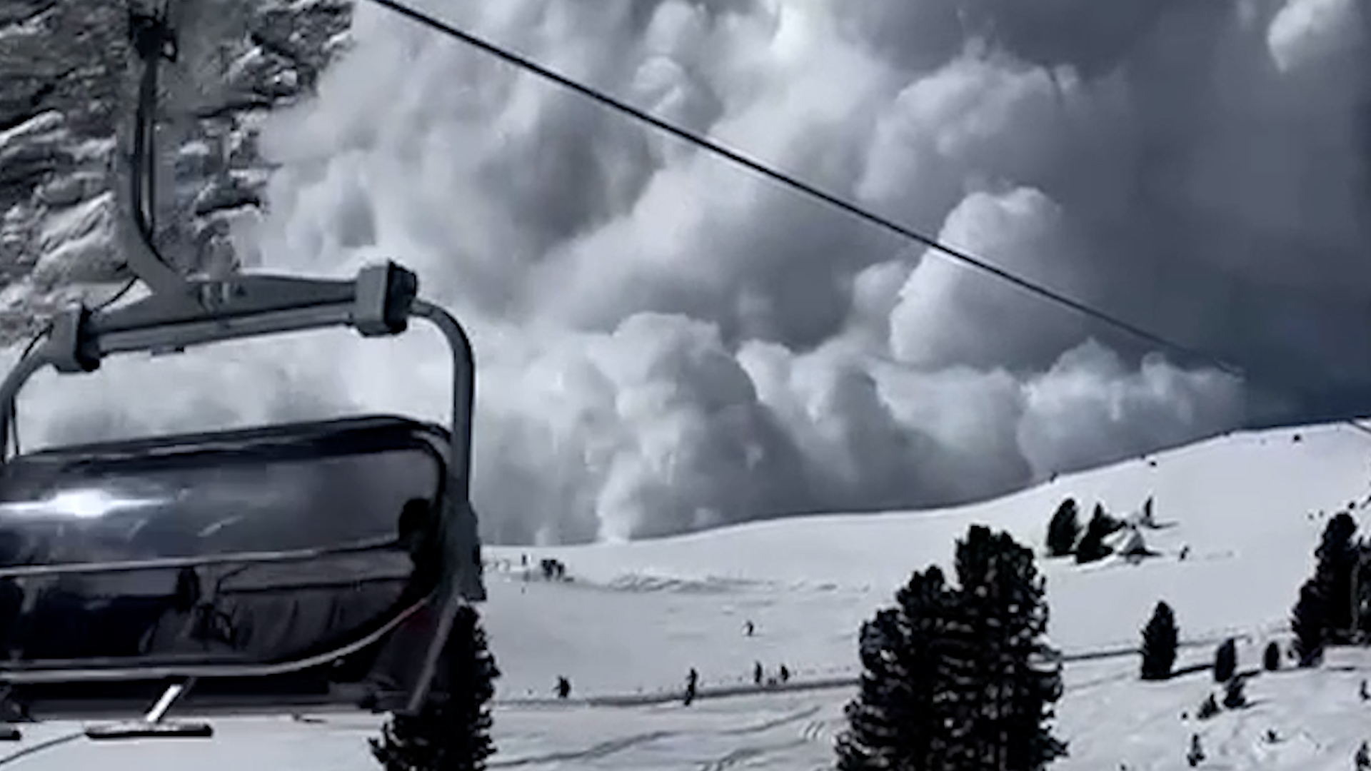 Das war der erschreckende Moment, in dem eine Lawine aus dem Nichts einen Berg herunterkam und Skifahrer im Schnee vergrub.<br /><br />Ein Mann fuhr am 19. März mit einem Sessellift in Gröden, Italien, als er die dramatische Szene mit der Kamera festhielt.<br /><br />Glücklicherweise wurden keine Verletzungen gemeldet.