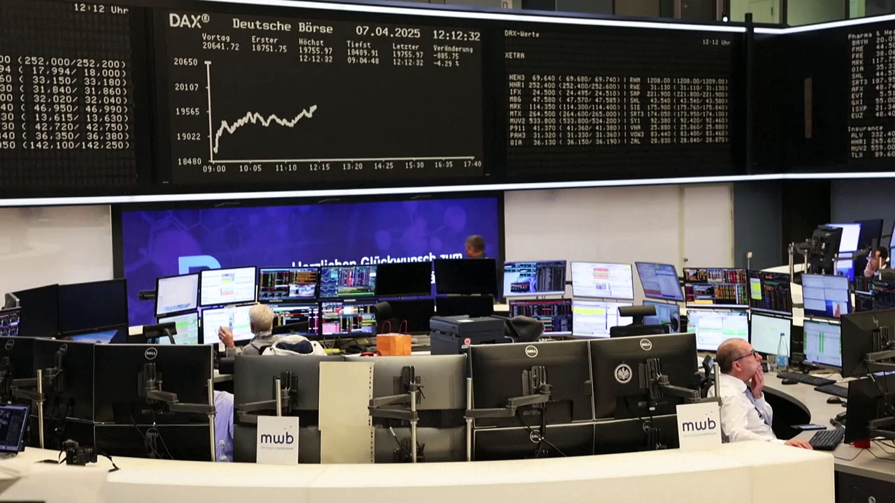 Die Zoll-Ankündigungen von US-Präsident Donald Trump haben die Börsen weltweit auf Talfahrt geschickt. Mit rund 13 Prozent besonders hoch waren die Verluste in Hongkong. In Frankfurt verlor der Dax zum Handelsbeginn zehn Prozent, erholte sich im Laufe des Tages aber wieder etwas.