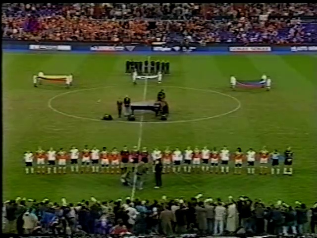 Mittwoch, 24. April 1996<br />Niederlande 0:1 Deutschland<br />Tore<br />0 : 1 Jürgen Klinsmann 19. / Elfmeter<br /><br /> Edwin van der Sar <br /> Winston Bogarde <br /> John Veldman 78'<br /> Danny Blind <br /> Frank de Boer <br /> Peter Hoekstra <br /> Richard Witschge 56'<br /> Clarence Seedorf <br /> Jordi Cruyff <br /> Dennis Bergkamp <br /> Gaston Taument 56'<br />Reservespieler<br /> Jaap Stam 78'<br /> Phillip Cocu 56'<br /> Youri Mulder 56'<br /> <br /> Andreas Köpke <br /> Stefan Reuter <br /> Jürgen Kohler <br /> Mario Basler 84'<br /> Christian Ziege <br /> Steffen Freund <br /> Matthias Sammer 46'<br /> Dieter Eilts gelb 52' 79'<br /> Thomas Häßler 90'<br /> Jürgen Klinsmann <br /> Oliver Bierhoff <br />Reservespieler<br /> Markus Babbel 79'<br /> Thomas Helmer 46'<br /> Mehmet Scholl 84'<br /> Stefan Kuntz 90'<br /><br />Trainer: Guus Hiddink<br /><br />Trainer: Berti Vogts<br /><br /> [Stadion] De Kuip (Rotterdam / Niederlande)<br /> [Zuschauerzahl] 27.000<br /> [Schiedsrichter] Pierluigi Collina (Italien)