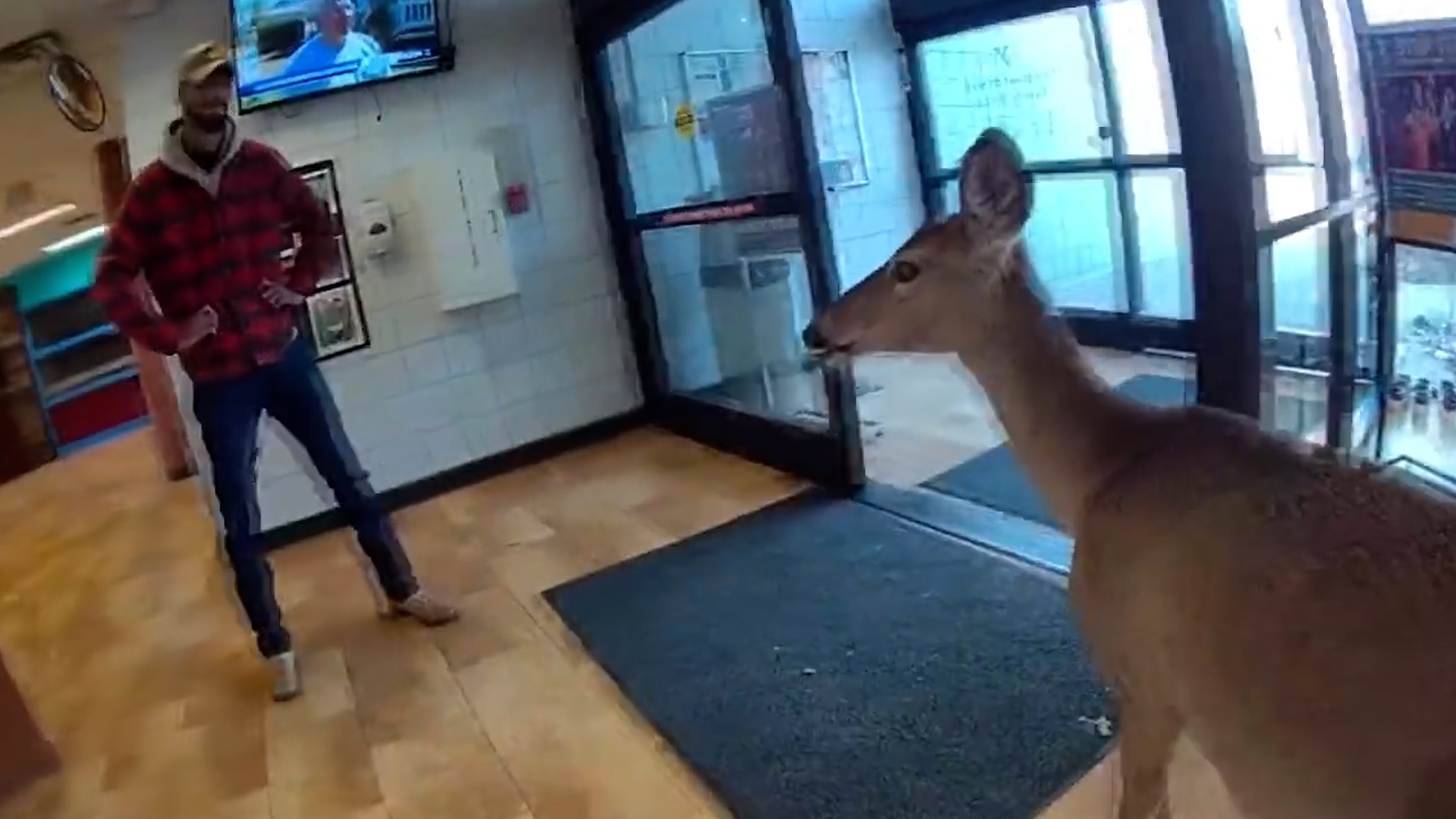 Ein Hirsch ist in eine YMCA-Einrichtung in den USA eingedrungen und hat am 8. April 2025 die Polizei von Louisville Metro (LMPD) auf den Plan gerufen.<br /><br />Die Beamten eskortierten das Tier hinaus und teilten die Aufnahmen der Bodycam.