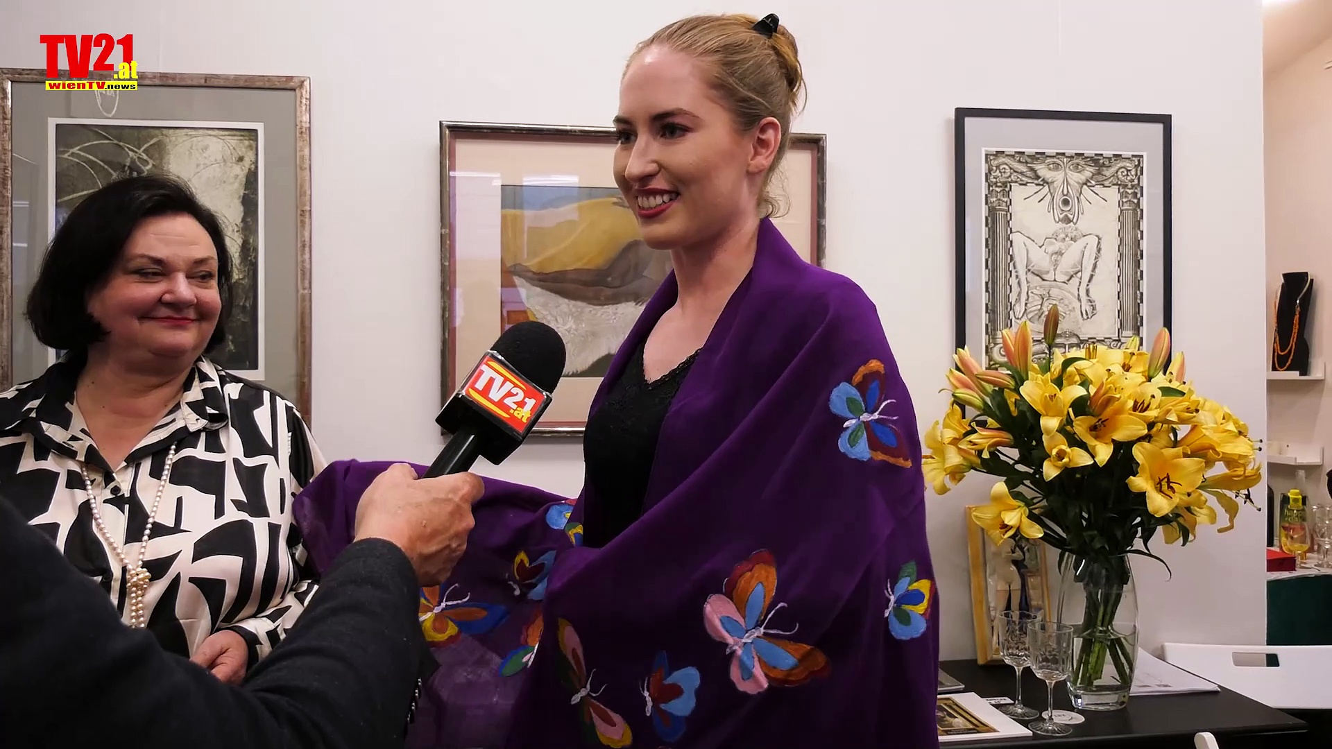 Die wunderschön gestalteten Tücher von Amir Hosein Rastegar wurden im Rahmen einer Modenschau präsentiert und zum Verkauf angeboten. Der Künstler ist erst 15 Jahre alt, lebt im Iran und ist autistisch. Diese Veranstaltung stand unter der Schirmherrschaft der Künstlerin SiMohre, die schon seit Jahren in dieser Galerie ihren Schmuck ausstellt. SiMohre stammt auch aus dem Iran und hat diese Veranstaltung initiiert und präsentiert ihren Schmuck. Im Anschluss zeigte Brigitte Riedel ihre Bilder.<br />Abschliessend gab es ein Konzert mit Gottfried Falkenstein (Gesang) und Karl Macourek (Harmonika).