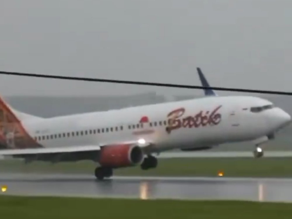 Als ein Flugzeug der indonesischen Batik Air landen möchte, wird es von einem heftigen Seitenwind erfasst. Der Pilot manövrierte den Jet auf nur einem Rad zu Boden.