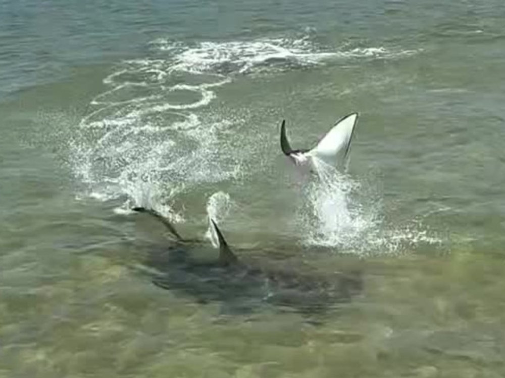 Einem Fischer sind in Australien Aufnahmen von einem spektakulären Naturschauspiel gelungen: Ein Rochen trickst einen Hammerhai aus und entkommt dem Raubfisch.