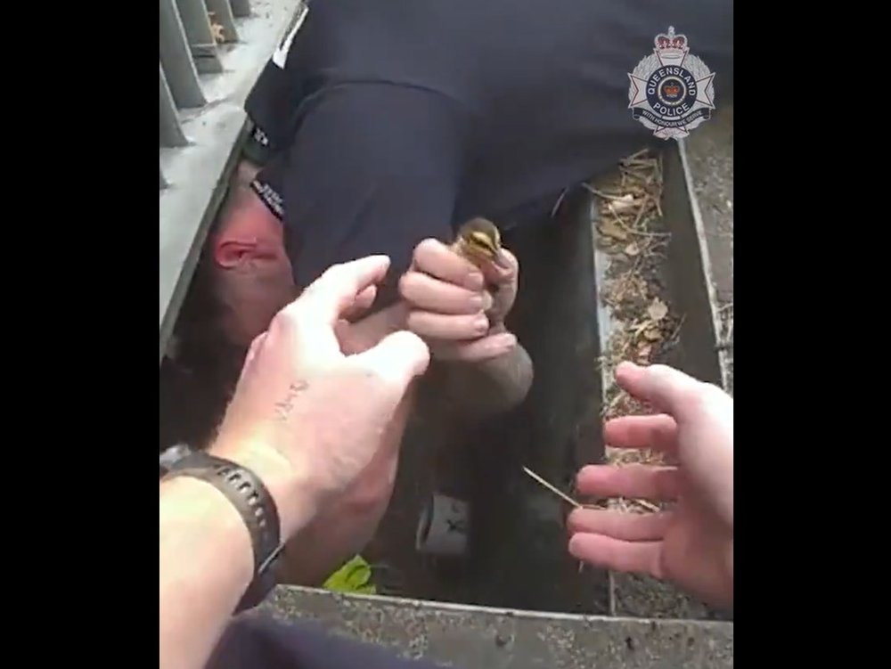 Zwei Polizisten aus dem australischen Fortitude Valley retteten acht Entenküken aus einem Abfluss. Sie wurden danach zu einer Tierschutzorganisation gebracht.