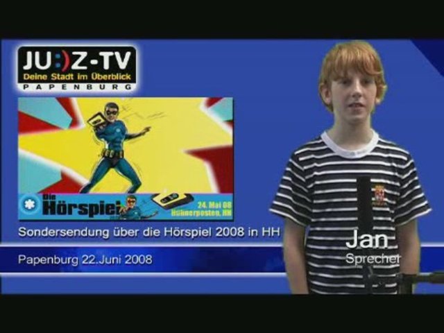 Nach einem Totalausfall ist die Sendung wieder online. Nach und nach versuchen wir so viele alte Sendungen wie mögliche wieder hochzuladen. <br /> <br />Jeder von euch hat schon einmal Hörspiele gehört. Vielleicht seid ihr sogar richtige Hörspielfans und sammelt einige Serien. Dann taucht ihr beim Hören bestimmt auch in die spannenden Geschichten ein. <br />Damit ein Hörspiel gelingt, brauchen die Hörspielmacher talentierte Sprecher, die eure Phantasie anregen. Doch wie sehen die Sprecher eurer Hörspielhelden wirklich aus? Wer denkt sich die spannenden Abenteuer aus? Wie wird ein Hörspiel produziert und was machen die Sprecher, neben ihrer Arbeit im Hörspiel-Studio? <br />Wir waren in Hamburg auf der ersten Hörspielmesse und trafen dort Heikedine Körting, die Regisseurin der Drei ???, TKKG, der Fünf Freunde und noch vielen weiteren bekannten Hörspielserien, die Autorin der Fünf Freunde Hörspiele Gabriele Hartmann, Volker Brandt, der bekannte deutsche Schauspieler (Schwarzwaldklinik, Tatort, Das Traumschiff) und die deutsche Stimme von Michael Douglas, Kari Erhardt, die neue Autorin der Drei ??? Bücher, Karin Lieneweg, die Sprecherin der Tante Matilda von den Drei ??? und Rainer Schmitt, die Stimme von X-Ray-3, alias Larry Brent. <br /> <br />1) Überblick über die Hörspielmesse <br /> <br />2) Interview mit Heikedine Körting (Regie ???, TKKG, Fünf Freunde, Hui Buh, Larry Brent...) <br /> <br />3) Interview mit Christian Rode (Sherlock Holmes, ???, TKKG) <br /> <br />4) Interview mit der Autorin der 5 Freunde, Gabriele Hartmann <br /> <br />5) Interview Volker Brandt (Deutsche Stimme von Michael Douglas und Sprecher bei vielen ???-Folgen) <br /> <br />6) Wir empfehlen Euch Internetseiten zum Thema Hörspiele <br /> <br />7) Kari Erhardt, die neue Autorin der Drei ??? <br /> <br />8) Interview Simona Pahl, Sprecherin der Fear Street-Hörbücher <br /> <br />9) Interview Karin Lieneweg, Tante Matilda Drei ??? <br /> <br />10) Interview Rainer Schmitt – Larry Brent