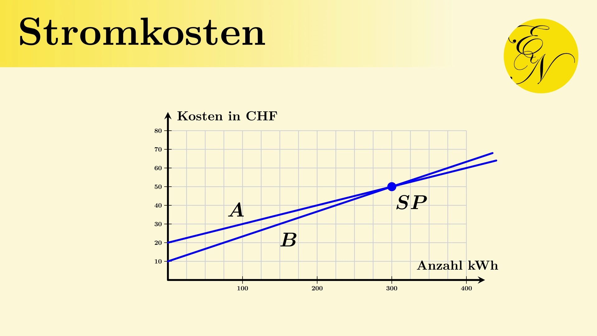 Stromtarif<br />Berechnung der monatlichen Stromkosten mit einer linearen Funktion<br /><br />Willkommen auf dem Kanal von EducaNova. Hier findet ihr viele Lernvideos zu Themen aus der Mathematik und der Physik auf der Sekundarstufe 2.