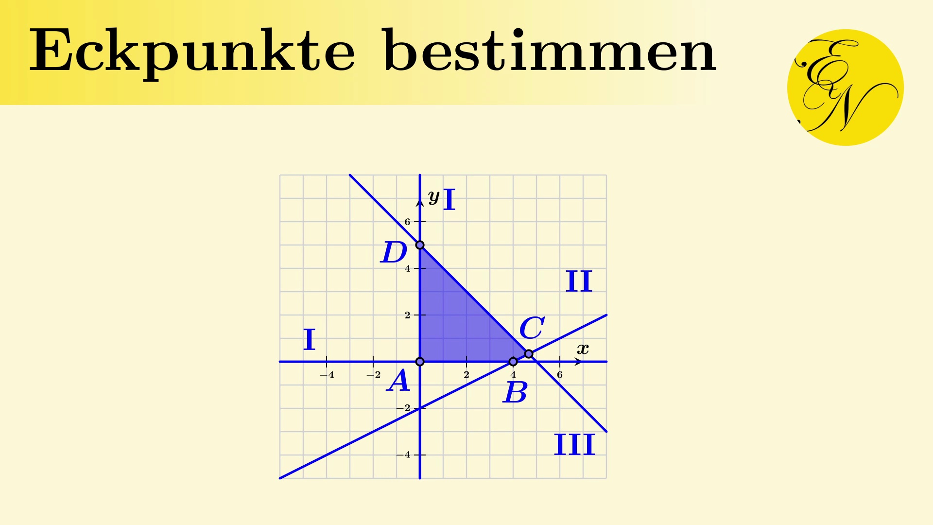 Wir bestimmen die Eckpunkte eines Planungspolygons eines Ungleichungssystems.<br /><br />Willkommen auf dem Kanal von EducaNova. Hier findet ihr viele Lernvideos zu Themen aus der Mathematik und der Physik auf der Sekundarstufe 2.