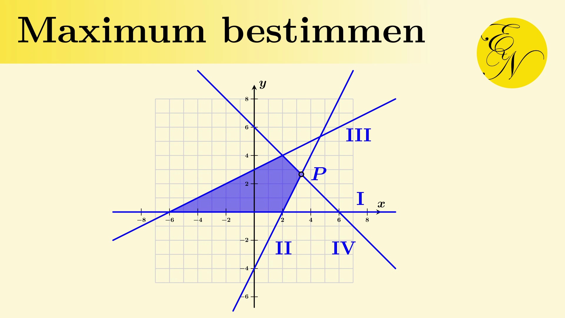 Wir bestimmen das Maximum eines Ungleichungssystems.<br /><br />Willkommen auf dem Kanal von EducaNova. Hier findet ihr viele Lernvideos zu Themen aus der Mathematik und der Physik auf der Sekundarstufe 2.