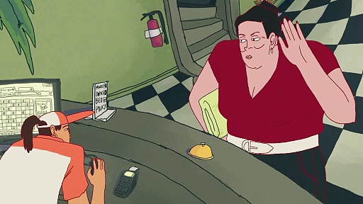 Robin sitzt, wie jeden Tag, an der Rezeption eines Hostels. Sie spielt Online-Schach zur eintönigen Melodie der Lobbymu | dG1fdTJQVjlHaC1wb1U