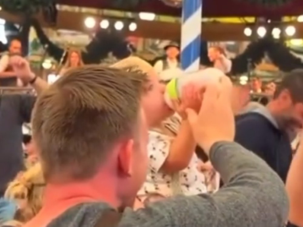 In einem Video, das gerade viral geht, ist ein Kleinkind auf dem Oktoberfest zu sehen. Es wird von der Menge gefeiert, weil es eine Milchflasche ext. Viele Nutzer reagieren empört.
