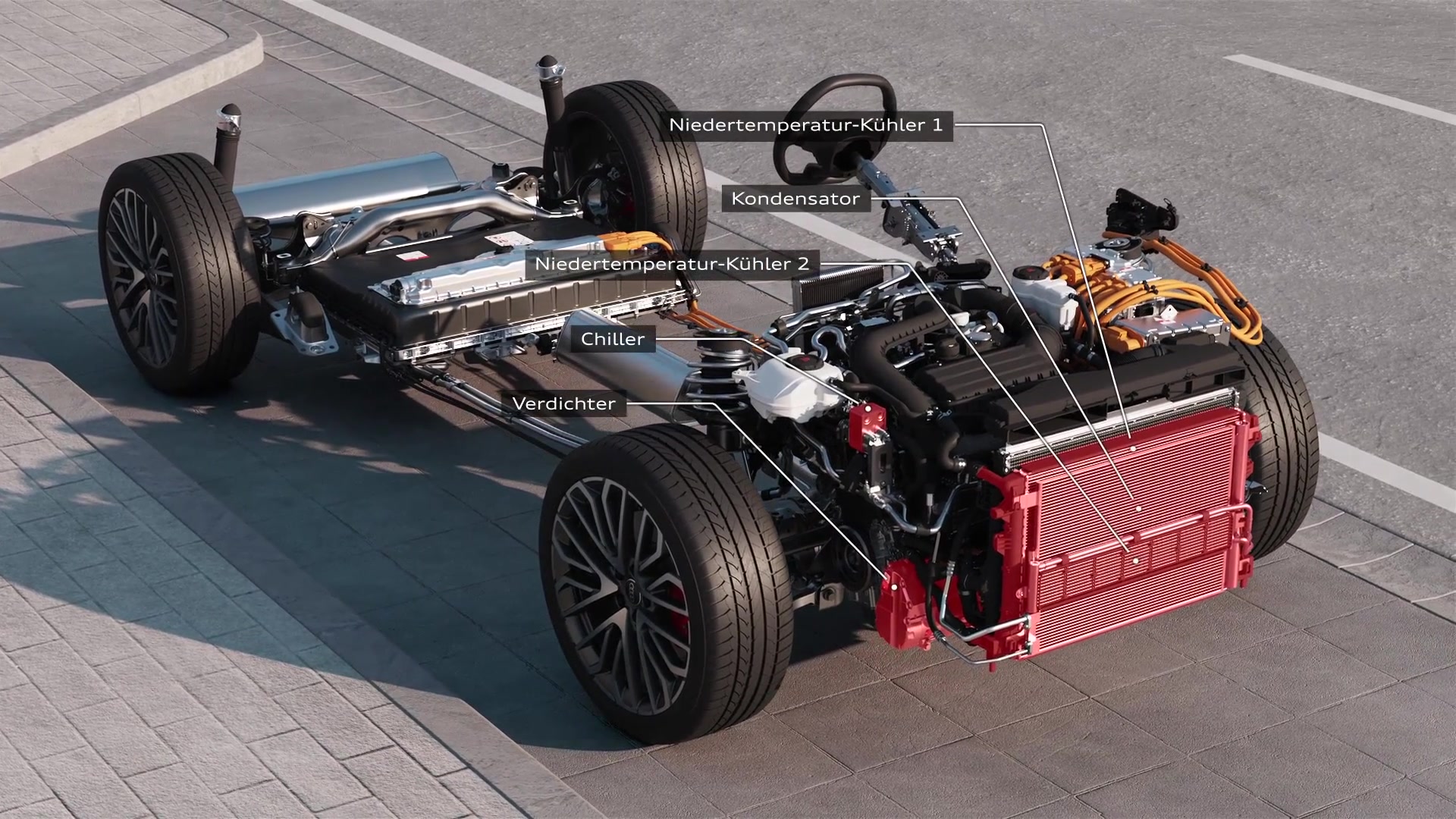 Diese technische Animation zeigt den die Funktionsweise des Thermomanagements im Audi Q3 e-hybrid.
