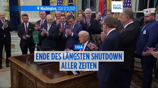 Rekord-Shutdown beendet: Trump unterschreibt Übergangshaushalt<br /><br />Die Unterzeichnungszeremonie fand nur wenige Stunden nach der Verabschiedung der Maßnahme durch das Repräsentantenhaus statt, die mehrheitlich mit 222:209 Stimmen erfolgte. Der Senat hatte die Maßnahme bereits am Montag verabschiedet.<br /><br />LESEN SIE MEHR : http://de.euronews.com/2025/11/13/rekord-shutdown-trump-ubergangshaushalt<br /><br />Abonnieren Sie! Euronews gibt es in 12 Sprachen.