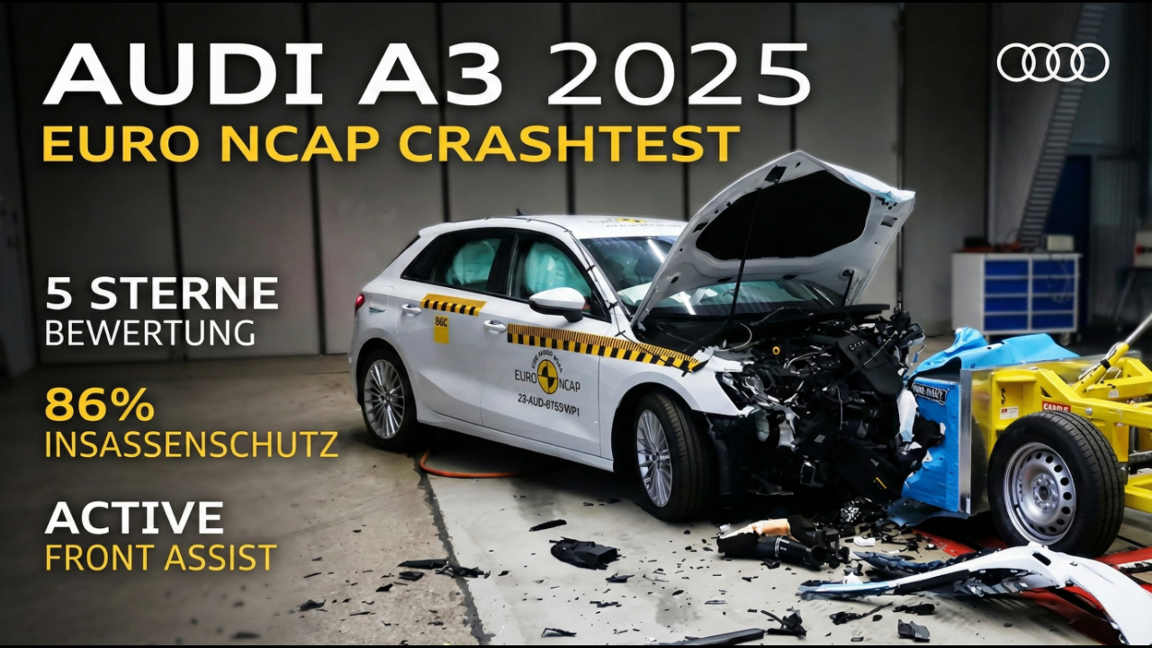 Der Audi A3 35 TFSI, Modelljahr 2025, wurde vom Euro NCAP getestet und mit 5 Sternen bewertet. In diesem Video erfährst du alle wichtigen Fakten zur Sicherheit, Technik und Ausstattung des beliebten Kompaktwagens.<br /><br />😇 Dein Abo hilft uns: https://tublo.eu/abonnieren <br />✅ Source: Euro NCAP<br />➡️ Mehr Infos: www.tuningblog.eu<br /><br />Der Audi A3 35 TFSI aus dem Jahr 2025 zeigt im Euro NCAP Crashtest eine starke Performance und erreicht 86 % Schutz für Erwachsene, 81 % für Kinder und 76 % für ungeschützte Verkehrsteilnehmer. Der getestete Fünftürer wiegt 1,4 Tonnen und verfügt serienmäßig über zahlreiche Assistenzsysteme wie Spurhalteassistent, Müdigkeitserkennung, Gurtwarner vorne und hinten sowie einen Geschwindigkeitsassistenten mit Kamera- und Kartenerkennung.<br /><br />Im Bereich Insassenschutz punktet der A3 besonders in Seitenaufpralltests mit maximaler Punktzahl. Auch beim Schutz vor Schleudertrauma und bei der Funktion des automatischen Notrufs zeigt sich das Fahrzeug vorbildlich. Für Kinder sind Isofix, Top-Tether-Verankerungen und eine abschaltbare Beifahrerairbagfunktion vorhanden. Das Design bleibt gewohnt sportlich und hochwertig, die Verarbeitung auf Premium-Niveau.<br /><br />Mit dem „Active Front Assist“ erkennt das Fahrzeug Fußgänger und Radfahrer zuverlässig und leitet selbstständig Bremsvorgänge ab 5 Stundenkilometern ein. Auch die Ausstattung zur Vermeidung von Zweitkollisionen und Maßnahmen bei Fahrzeugüberflutung unterstreichen den hohen Sicherheitsanspruch von Audi.<br /><br />#AudiA3 #EuroNCAP #Crashtest2025 #Audi<br />#AudiA3Test #Kompaktklasse #Sicherheit #Fahrzeugbewertung<br />#tuningblog - das Magazin für Auto-Tuning und Mobilität!