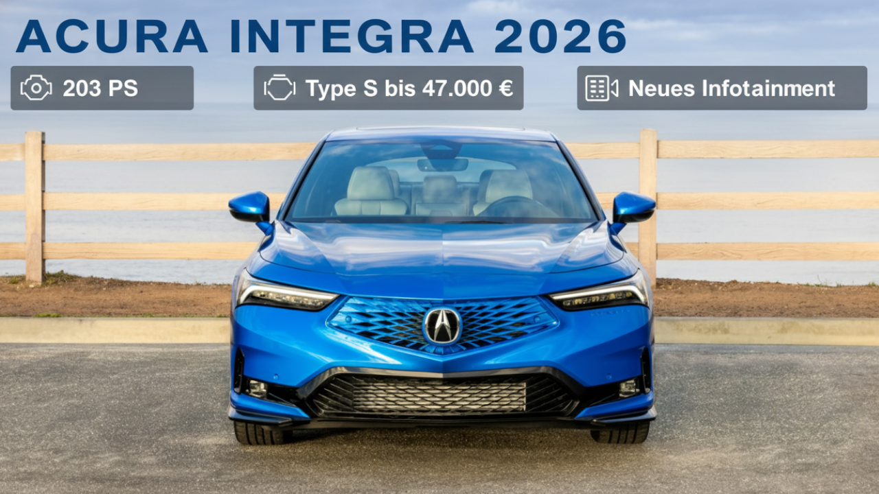 In diesem Video geht es um den neuen Acura Integra 2026 – kompakt, sportlich und technisch modernisiert. Wir zeigen euch alle wichtigen Neuerungen am Design, der Ausstattung und den verfügbaren Versionen, inklusive Type S.<br /><br />😇 Dein Abo hilft uns: https://tublo.eu/abonnieren <br />✅ Source: Acura<br />➡️ Mehr Infos: https://www.tuningblog.eu/dies-u-das/2026-acura-integra-738519/<br /><br />Der neue Acura Integra 2026 bleibt dem erfolgreichen Konzept treu: ein sportlich-kompakter Hatchback mit gezielten Upgrades. Unter der Haube arbeitet weiterhin ein 1,5-Liter-Turbovierzylinder mit 203 PS und 260 Newtonmeter. Serienmäßig ist ein stufenloses Automatikgetriebe verbaut. In der A-Spec Technology-Version gibt es ein 6-Gang-Schaltgetriebe, adaptive Dämpfer und ein Sperrdifferenzial für mehr Dynamik.<br /><br />Neu ist das serienmäßige 9-Zoll-Infotainmentsystem mit kabellosem Apple CarPlay, Android Auto und induktiver Lademöglichkeit. Optisch sorgen ein größerer Frontsplitter, neue Seitenschweller, moderne 18-Zoll-Felgen und drei neue Lackierungen für frischen Look. Innen erwarten euch blaue Wildleder-Akzente, neue Dash-Einsätze und Ambientebeleuchtung.<br /><br />Die Preise starten bei rund 30.000 €, die Topvariante Type S liegt bei etwa 47.000 €. Produziert wird der Integra im US-Werk Marysville, was Zollvorteile ermöglichen kann.<br /><br />#AcuraIntegra2026 #TypeS #Hatchback #Neuwagen<br />#Autoneuheiten #A-Spec #tuningblog #Acura<br />#tuningblog - das Magazin für Auto-Tuning und Mobilität!