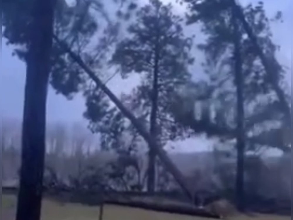 Ein Sturm mit Windgeschwindigkeiten bis 160 km/h lässt diese Bäume wie Streichhölzer umknicken.