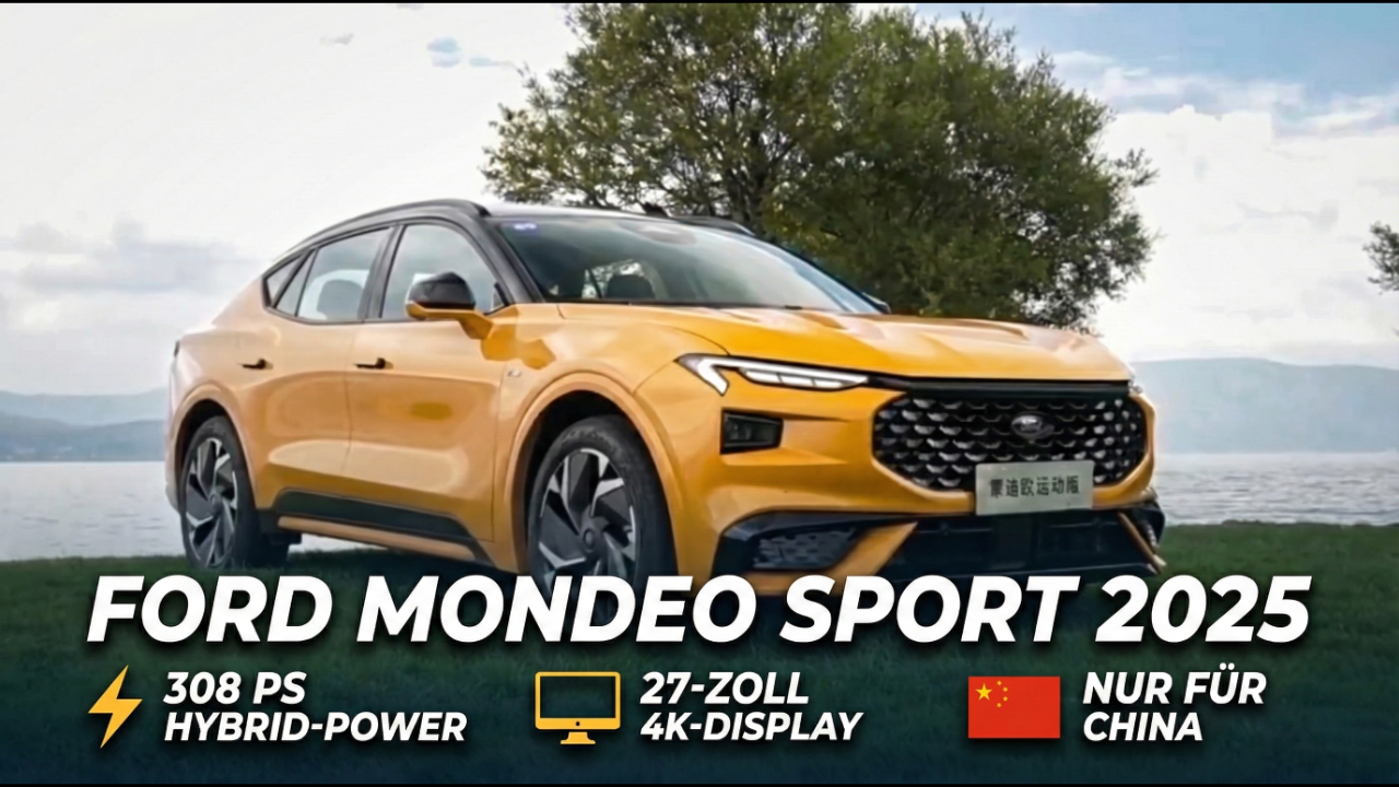 Der neue Ford Mondeo Sport 2025 zeigt sich in China als stylisher Crossover mit moderner Hybridtechnik und jeder Menge Hightech. Das 4,9 m lange SUV-Coupé liefert bis zu 308 PS, ein 27-Zoll-4K-Display und mehr als 500 Liter Kofferraumvolumen.<br /><br />😇 Dein Abo hilft uns: https://tublo.eu/abonnieren <br />✅ Source: Ford u.a. <br />➡️ Mehr Infos: https://www.tuningblog.eu/dies-u-das/ford-mondeo-sport-763719/<br /><br />Optisch dynamisch und innen voll digitalisiert, basiert der Mondeo Sport auf der C2-Plattform von Ford. Der ST-Line Hybrid bringt 308 PS und 403 NM auf die Straße, gepaart mit einem CVT-Getriebe und bis zu 201 km/h Top-Speed. Im Cockpit warten ein riesiger 27-Zoll-Bildschirm, Baidu-KI, L2+ Assistenzsysteme und B&O-Sound – China first, Europa geht leider leer aus.<br /><br />#FordMondeoSport #HybridSUV #Mondeo2025 #STLine<br />#Crossover #FordChina #AutoNews #tuningblog<br />#tuningblog - das Magazin für Auto-Tuning und Mobilität!